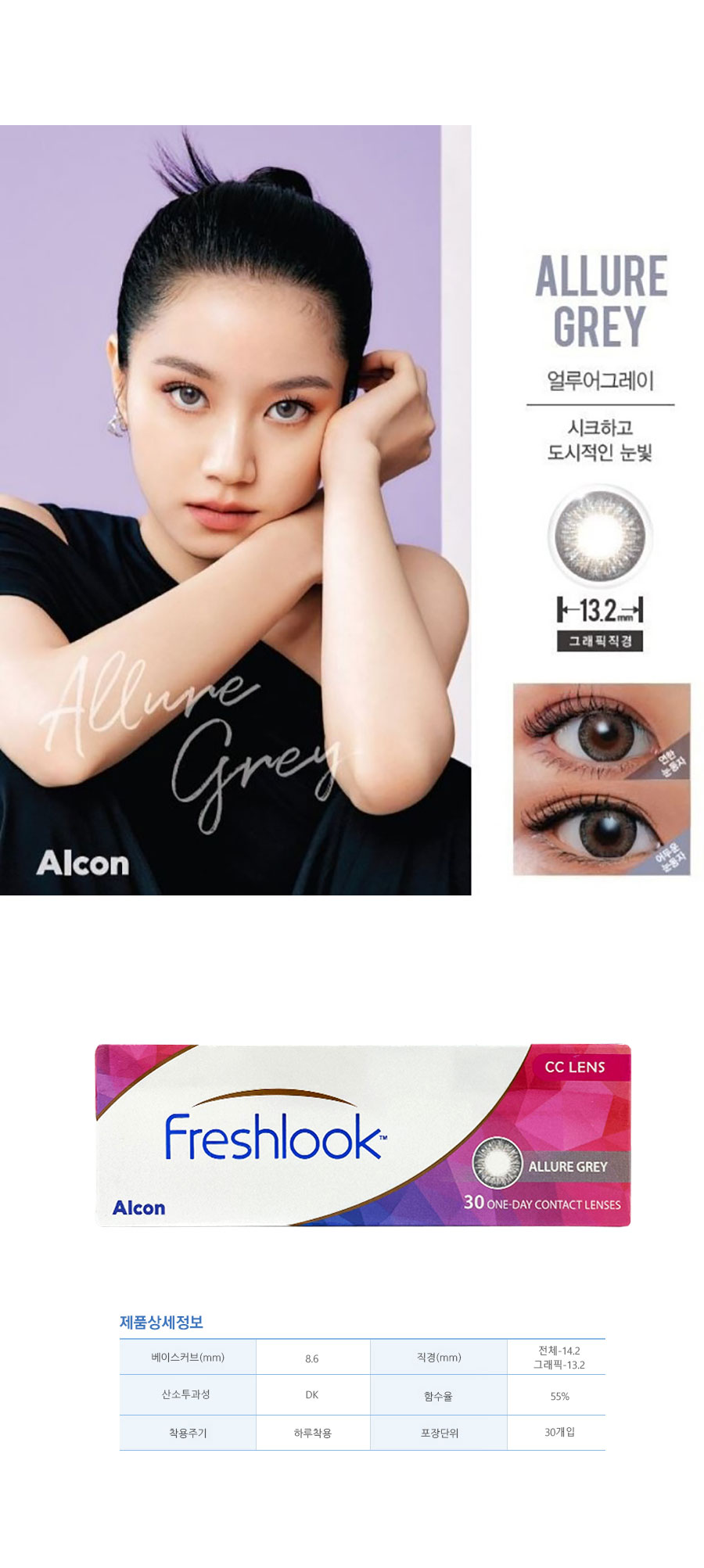 알콘 후레쉬룩 CC 원데이 컬러렌즈 (Allure Grey) (10개 들이)