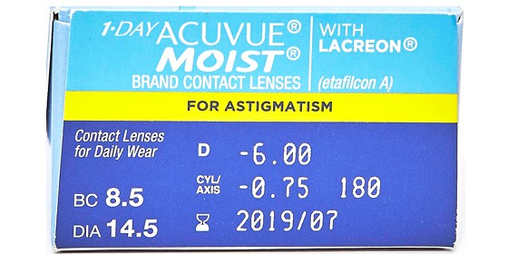 원데이 아큐브 모이스트 난시렌즈 CYL -2.25 (토릭) (30개 들이)